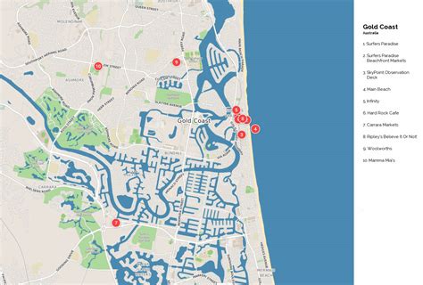 Tourist Attractions in Gold Coast Canals Map